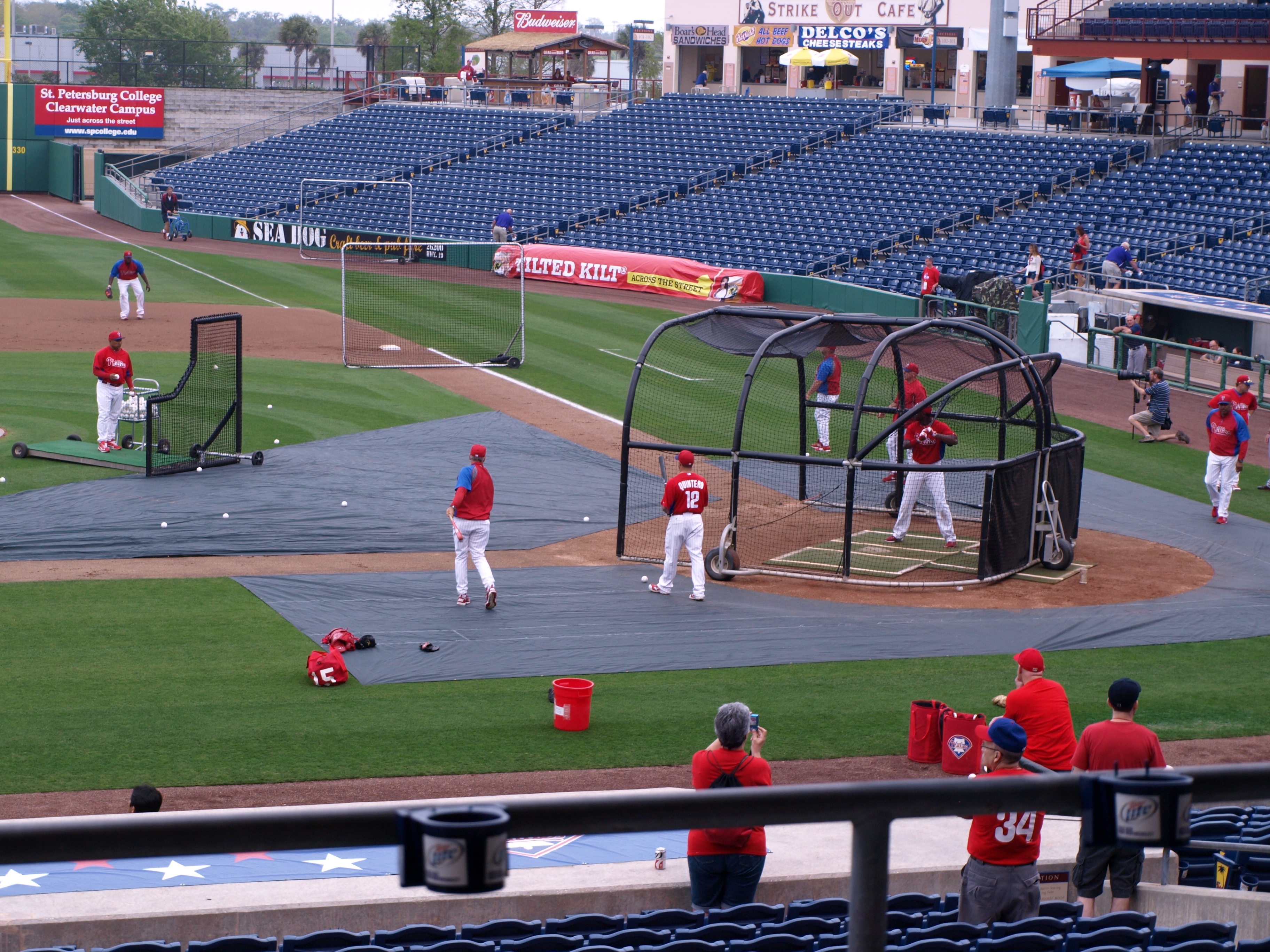 But now there is a pause in his day and he would like to take advantage of it by getting a bite to eat. After some twists and turns, he nudges a door open and is smack dab in the middle of the concourse of the stadium. Gates aren’t open just yet, but there are people milling about - mostly employees preparing for the game. The rain has stopped as quickly as it started and now the Phillies are in the middle of batting practice..