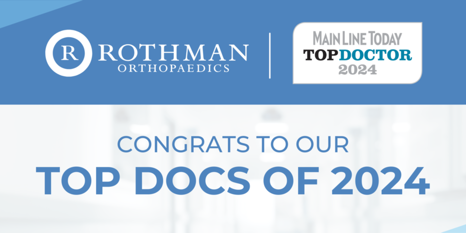 Rothman Orthopaedics is pleased to announce that 33 physicians have been named 2024 “Top Doctors” by Main Line Today. This recognition reflects peer nominations from colleagues licensed in Pennsylvania and highlights physicians who practice in Chester, Montgomery, or Delaware counties.